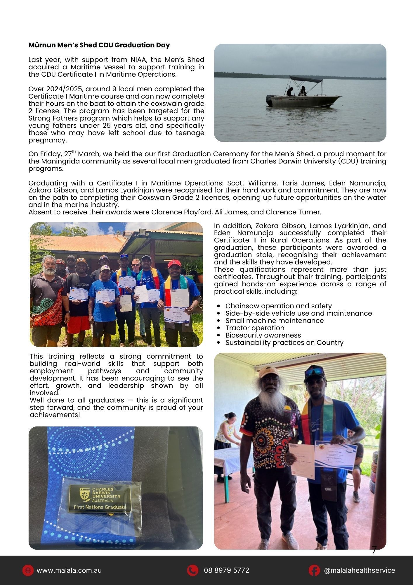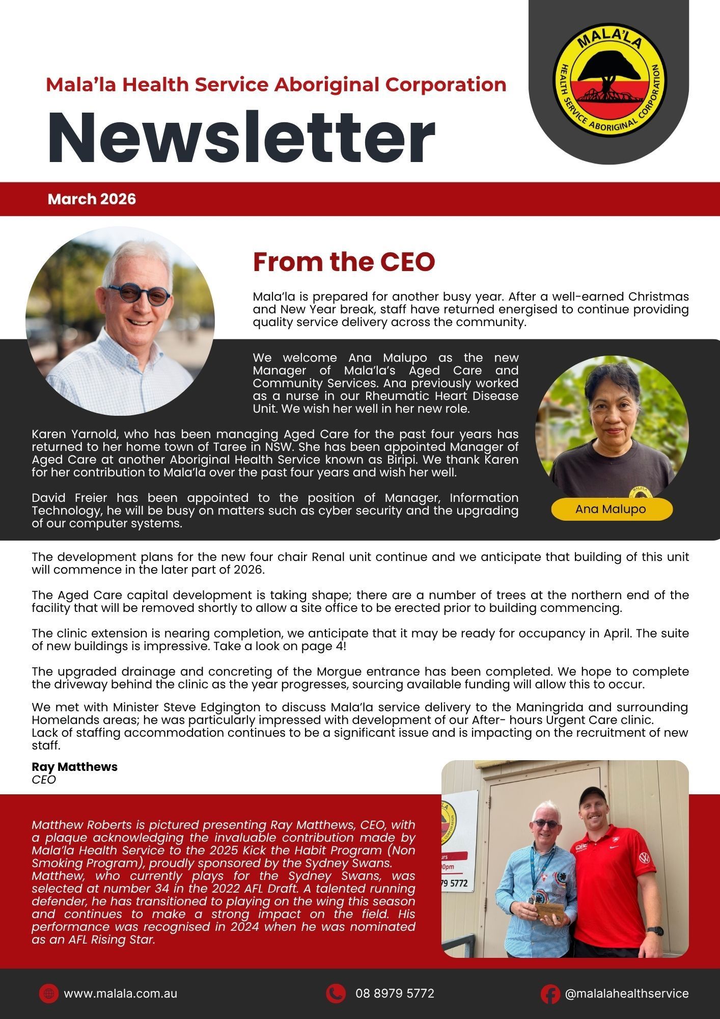 The year was off to a busy start with ongoing construction work on the clinic extension, Healthy Skin Week and a Graduation ceremony for the Men's Shed men. Take a look at our newsletter below to see what has been happening at Mala'la!