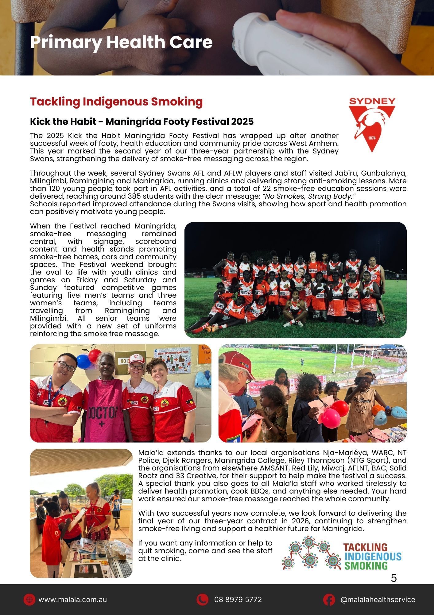 We wrap up the year by bringing home an RACGP award and Kicking the Habit at the Maningrida Footy Festival. Take a look at our December newsletter for all the latest!